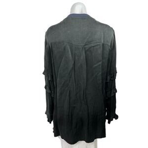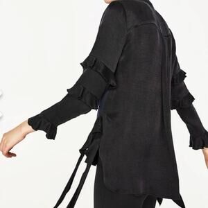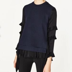 Zara Navy Blue Crew Neck Tiered Color Block Ruffle Long Sleeve Top Sweatshirt Size M