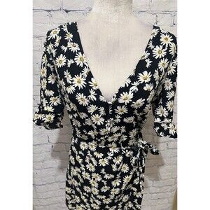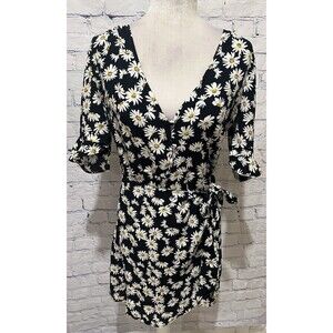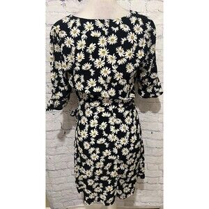 The Zara Navy Blue Daisy Print Dress is a stylish and versatile piece perfect for various occasions. With a flattering wrap skirt and short sleeves, this mini dress is ideal for travel, parties, or casual outings. Made from viscose material, it offers a comfortable fit in size medium, featuring a pretty floral daisy pattern in a vibrant blue color. The dress is designed with a zip closure for easy wear, making it a must-have addition to your summer, fall, or spring wardrobe. 18 inches pit to pit, 30 inch waist and 35 inches long. Smoke free home.