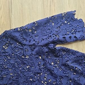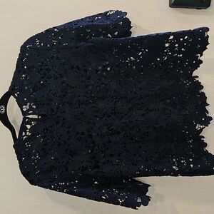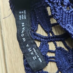 Zara Navy Blue Eyelet Embroidered Lace Top S