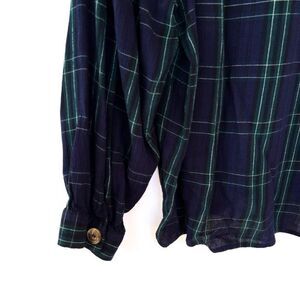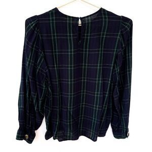 Zara Navy Blue Green Plaid Long Sleeve Top Small