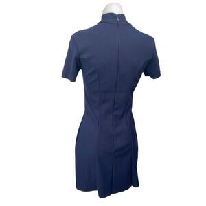 Zara Navy Blue Mock Neck Short Sleeve Stretch Pleated Mini Bodycon Dress Size S