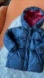 Stylish navy blue puffer jacket with a cozy red lining. Perfect for cold weather.