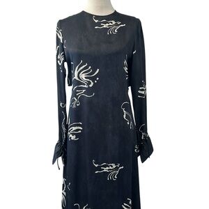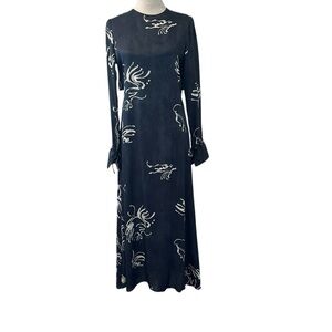 Zara Navy Blue and Cream Lng Sleeve Maxi Dress