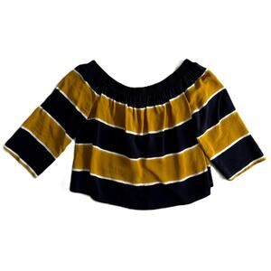 Zara Navy Blue and Mustard Stripes Off The Shoulder Top XS