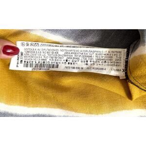 This Zara top features a stylish off-the-shoulder design with a navy blue base and mustard yellow stripes.