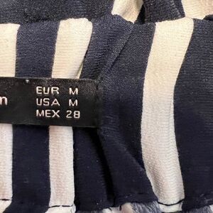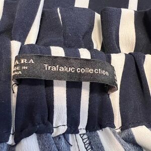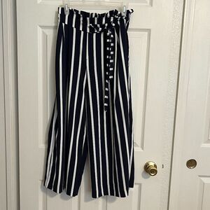 Zara Navy Blue Striped Wide Leg Cropped Pants Size M