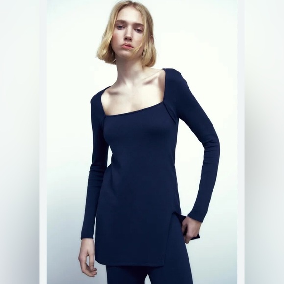 Elegant long sleeve design. Features a unique square neckline. Perfect for any occasion.