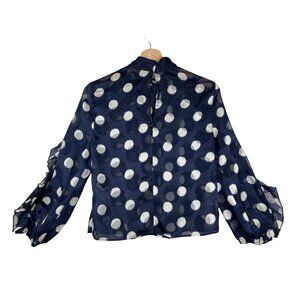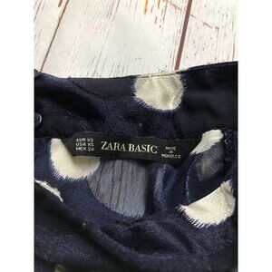 Zara Navy Polka Dot Ruffle Sleeve Top Size X-Small