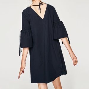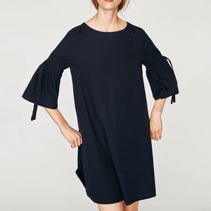 Zara Navy cotton dress with frilled sleeves