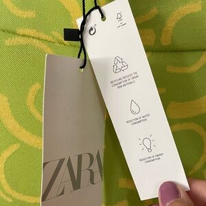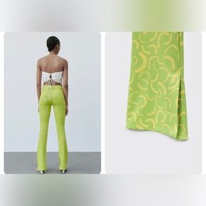 Zara| Neon Green Marbled 70’s Style Wide Leg Pull On Pants, Flare w Slit•••NWT
