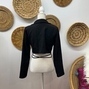 Zara Neutral Black V-Neck Knit Collared Tie Wrap Around Top Shirt Large