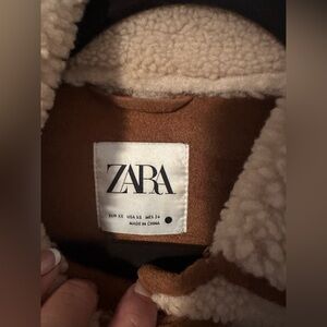Zara New Beige Camel Sherpa Fur Suede Lining Long Winter Coat Jacket Women XS
