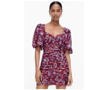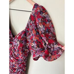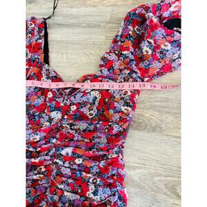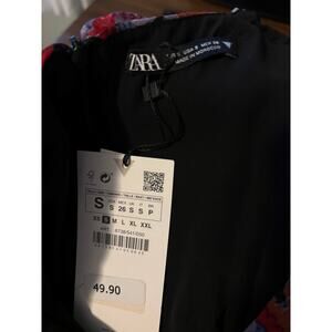 Zara New Floral Draped Low Plunge Neck Dress Size Small