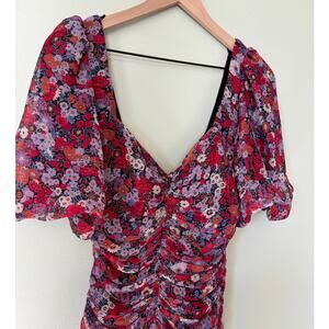 Zara New Floral Draped Low Plunge Neck Dress