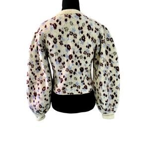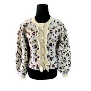 Zara New Woman Ruffle Front Puff Sleeve Floral Cardigan Sweater Small