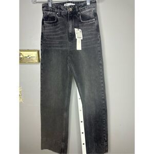 Zara New with tag HIGH-RISE STRAIGHT-FIT LONG LENGTH Black jeans size 2