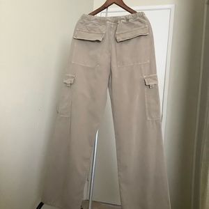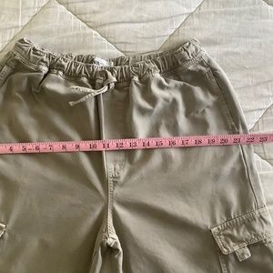 New Zara Cargo Pants / Size 12 (It says size 10 but it fits like a Size 12) .. Waist 19” (Elastic band) , Hips 22”, Rise 13”, Inseam 30” ..