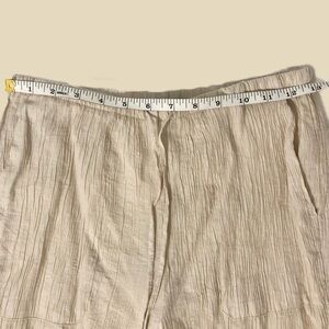 Zara Nude Beige Crinkle Effect Pull-on Drawstring Pants Size XS- Elastic waist- (2) Functional front slip pockets- Approx. measurements 13”waist, 11”rise, 30”inseam- GUC, except light marking on front thigh as seen in last 2 photos.
