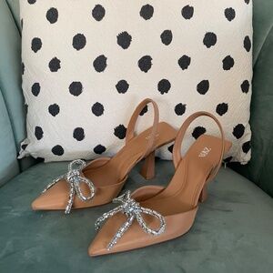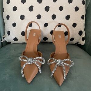 Zara Nude Embellished Bow Slingback Heel - Size 6 - 2248/010