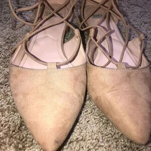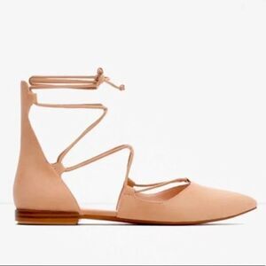 Zara Nude Suede Lace Up Ballet Flats Size 38 Euro Size 5 US