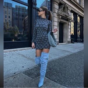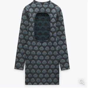 Zara Nwt Seamless Jacquard Shell Mock Neck Long Sleeved Stretch Knit Mini Dress