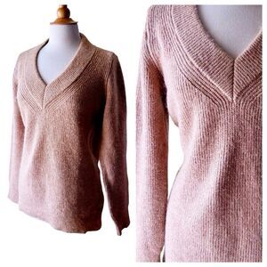 ZARA V-Neck Camel Oatmeal Beige Mohair Wool Blend Sweater - Large