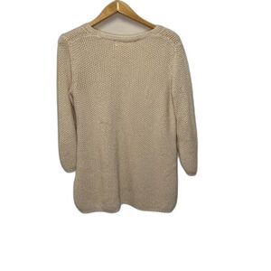 Zara Oatmeal Beige Shaker Knit Oversized V-neck 3/4 Sleeve Tunic Sweater Size M
