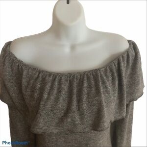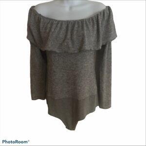 Zara Off Shoulder Ruffled Knit Bodysuit Heather Gray Size L Cozy Soft Winter