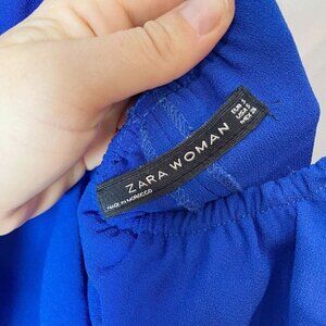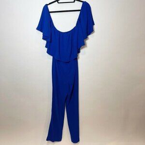 Zara Off The Shoulder Jumpsuit One Piece Womens S Royal Blue Ruffle Sleeveless