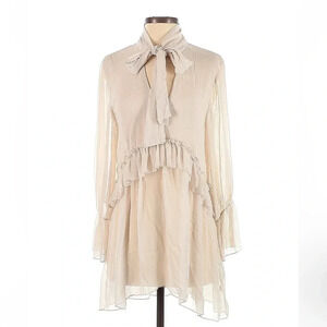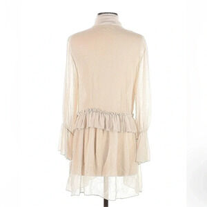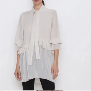 Zara | Off White / Cream Long Sleeve Sheer Ruffle Tie Neck Blouse Size XS