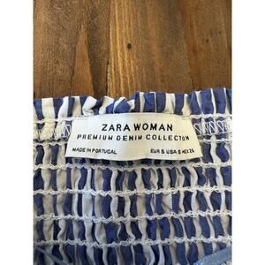 Zara Off the Shoulder Blue White Stripe Smocked Top Bell Sleeve Size Small