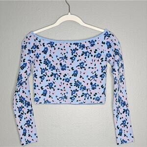 Zara Off the Shoulder Crop Top size s light blue floral knit crop great condition willing to except offers
