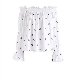 Zara Off the Shoulder White Floral Embroidered Long Ruffle Sleeve Boho Top