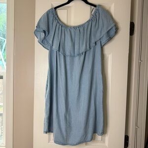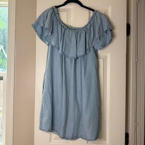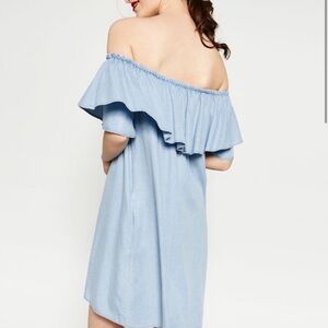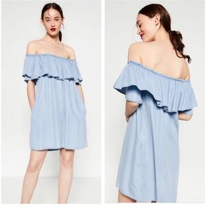 Zara Ruffles Off-the-shoulder Chambray Mini Dress