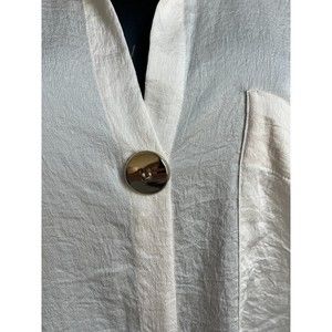 Chic off-white tunic with button-down design. Features a stylish collar and relaxed fit. Ideal for layering.