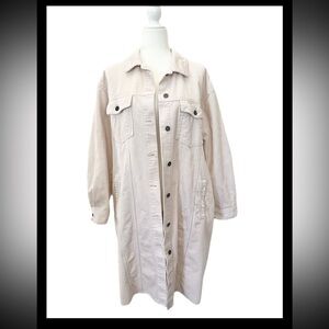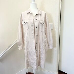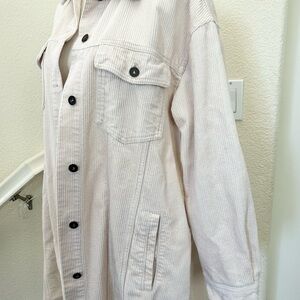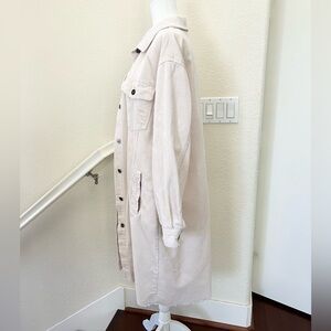 Zara Off-White Corduroy Long Shirt Jacket Size M 100% cotton pockets frayed hem