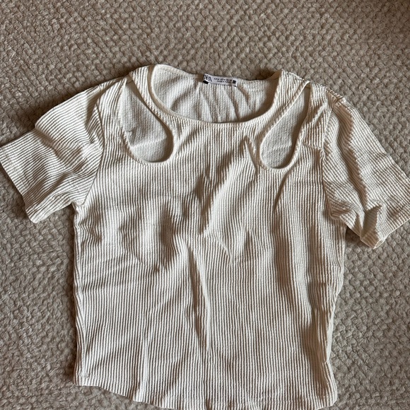 Zara Off-White Ribbed Top