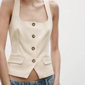 Zara Off-White Square Neck Button Down Sleeveless Vest Top