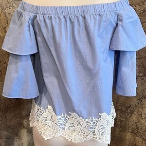 Zara Off the Shoulder Ruffles and Lace 3/4 Sleeve Blouse Size Small