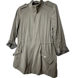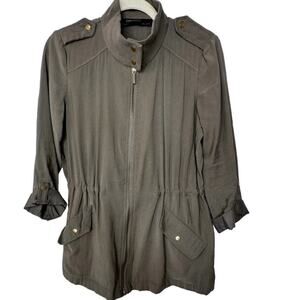 Zara Olive Green 3/4 Cuffed Sleeve Collared Zip Cinch Waist Jacket XS