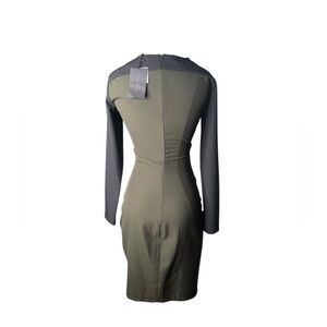 Zara long sleeve black and Olive green color block sheath dress with faux wrap. Size Medium. Crew neck with back zipper. Polyester blend.