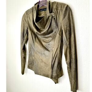 Zara Olive Green & Black Suede Long Sleeve Side Zip Cowel Neck Jacket XS