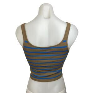Zara Olive Green Blue Striped Scoop Neck Pullover Cropped Tank Top Size S