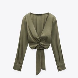 Zara Olive Green Linen Knotted Top Worn for pictures only once