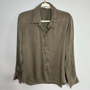 Zara Olive Green Long Sleeve Button Down Shirt Collared Shirt Women’s Size XL