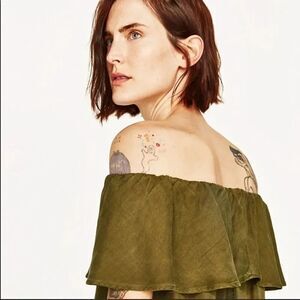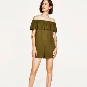 Zara Olive Green Off the Shoulder Ruffle Sleeve Romper Size XS