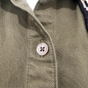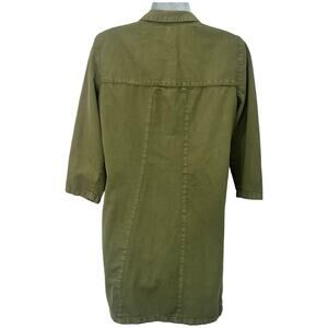 Zara Olive Green Patches Denim Button Down 3/4 Sleeve Shirt Dress sz S Trafaluc