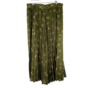Zara Olive Green Tiger Print Pleated Satin Maxi Skirt Women's Size XL