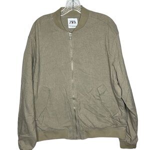 Zara Olive Green Zip Up Bomber Jacket. Size XL.