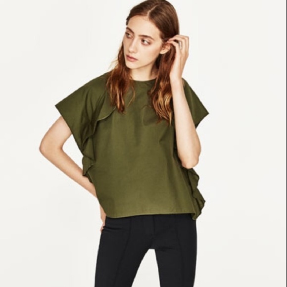 Zara Olive Ruffle Top